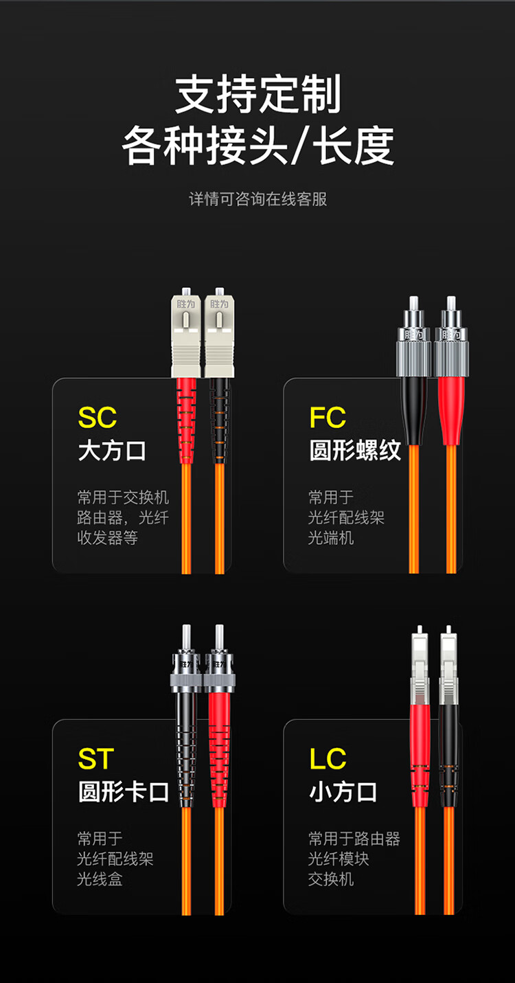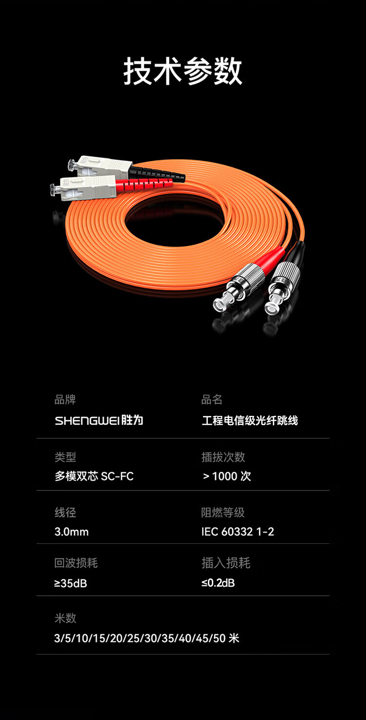 勝為SC/UPC-FC/UPC多模雙芯光纖跳線