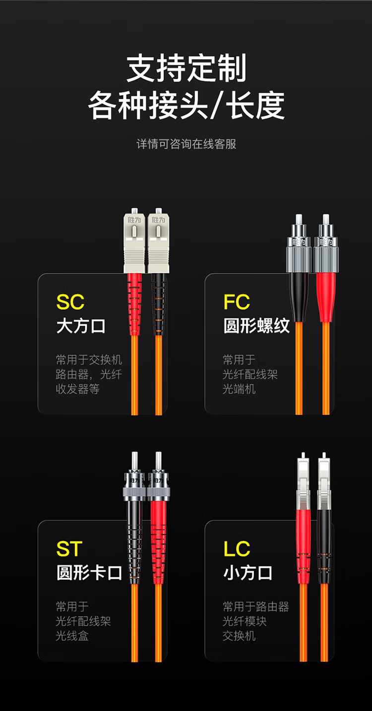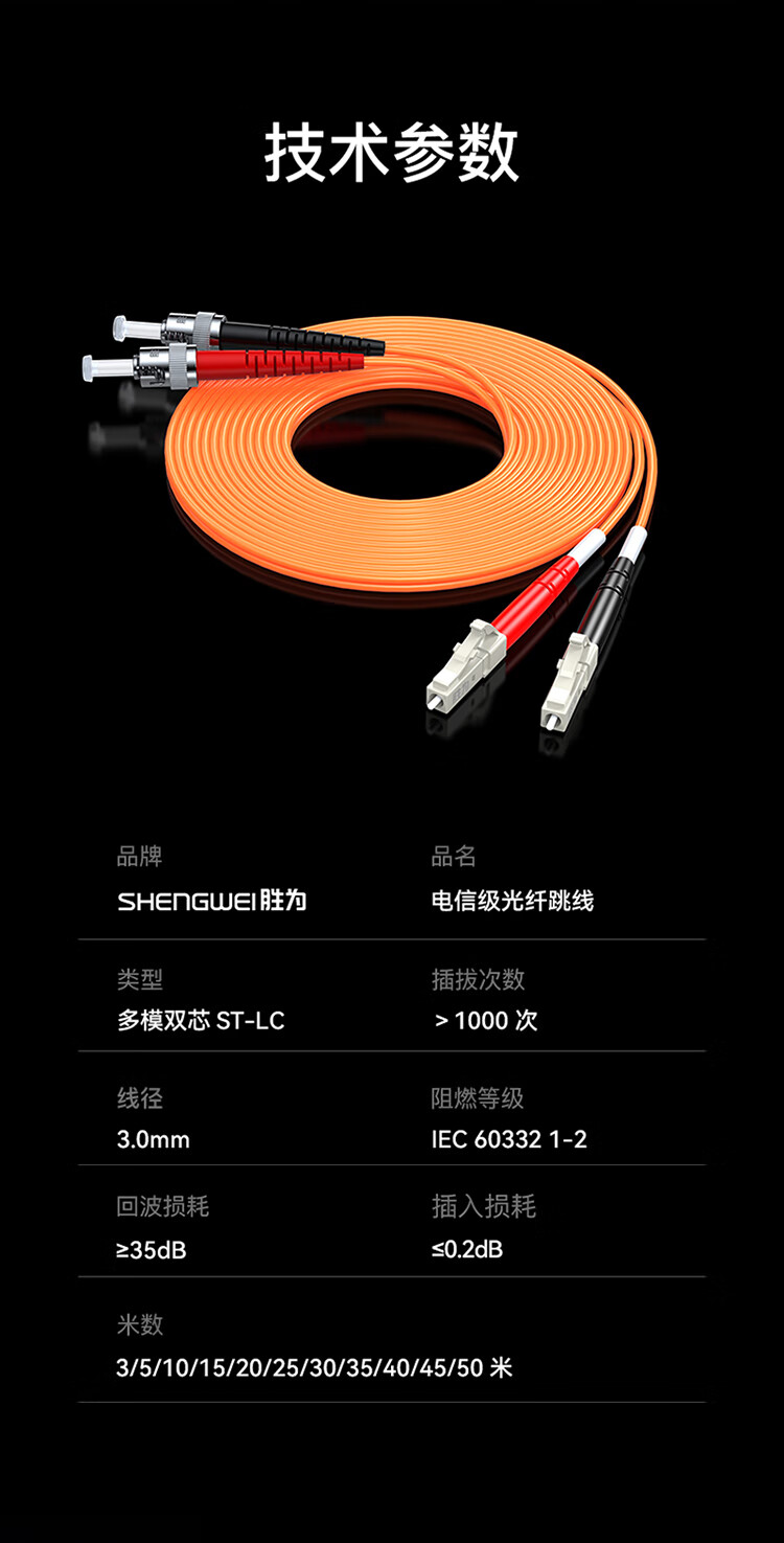 勝為ST/UPC-LC/UPC多模雙芯光纖跳線