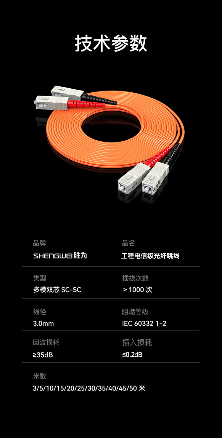 勝為SC/UPC-SC/UPC多模雙芯光纖跳線