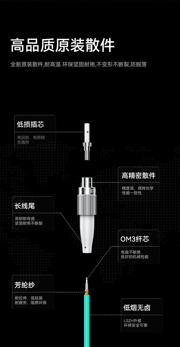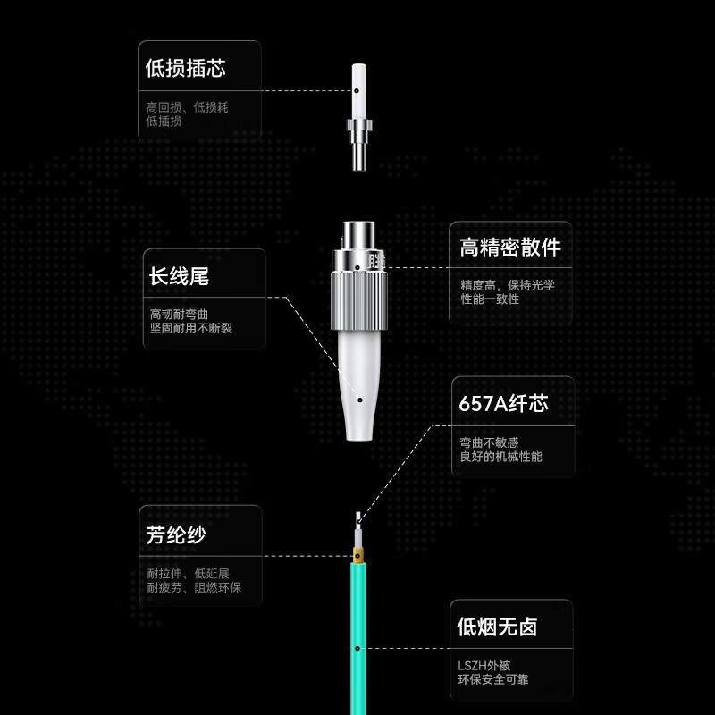 纖芯有良好的機(jī)械性能,便于熔接。光損小,傳輸快速穩(wěn)定;低煙無鹵外被,防拉抗搜性強(qiáng)低碳環(huán)保;產(chǎn)品選用全新高品質(zhì)陶瓷插芯,性能穩(wěn)定,高速可靠;廣泛應(yīng)用于通信機(jī)房及光端機(jī)和終端盒之間的連接,穩(wěn)定高速。