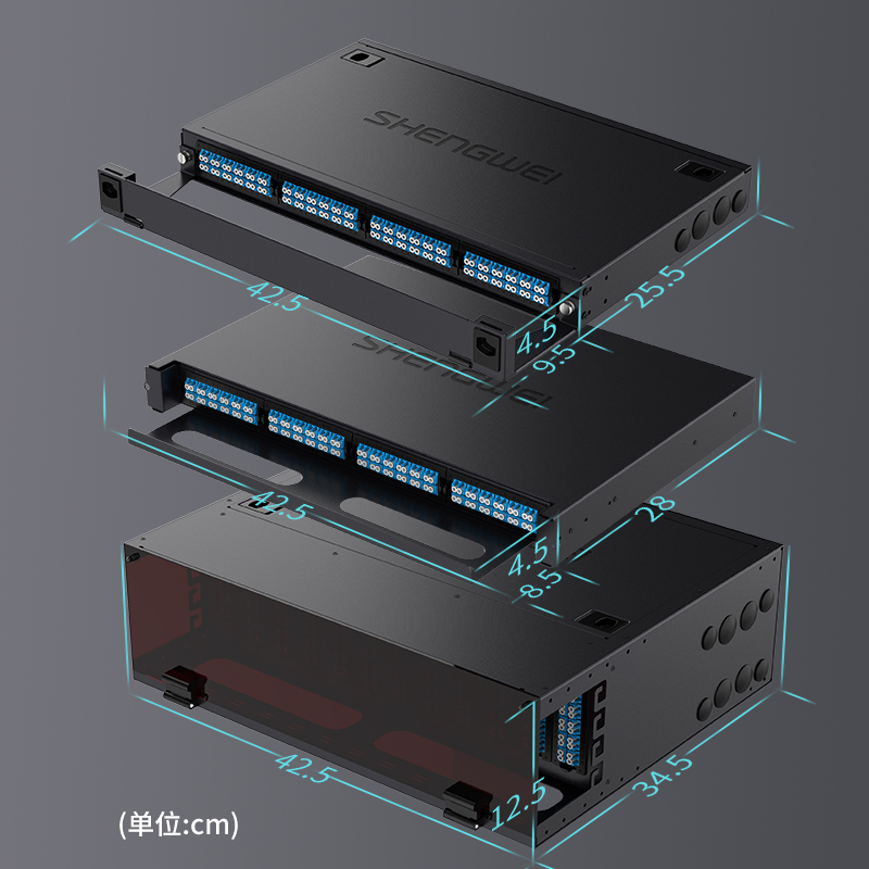 設(shè)計合理的掛耳部位,可根據(jù)機(jī)柜實際情況調(diào)節(jié),前后距離,避免由于尺寸不合適重新打孔,進(jìn)線口加防水膠塞設(shè)計,可防塵防水。端口采用模塊設(shè)計,用于模塊盒集中管理,提供光纖高密度連接能力。