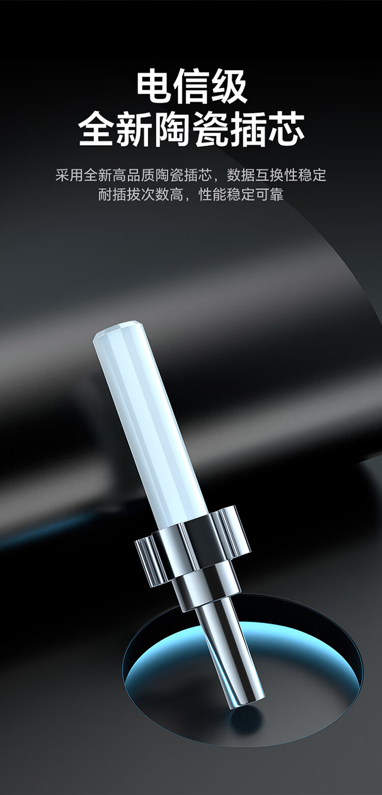 高精密散件,精度高,保持光學(xué)性能一致性;長線尾,高韌耐彎曲,堅固耐用不斷裂;A級纖芯,傳輸距離遠(yuǎn),彎曲柔韌性能好;磷化鋼絲,抗拉抗壓性能好,避免光纖受損;低煙無鹵外被,使用時間長,環(huán)保安全可靠;凹型槽設(shè)計,方便易剝離,方便接續(xù),提高工作效率。