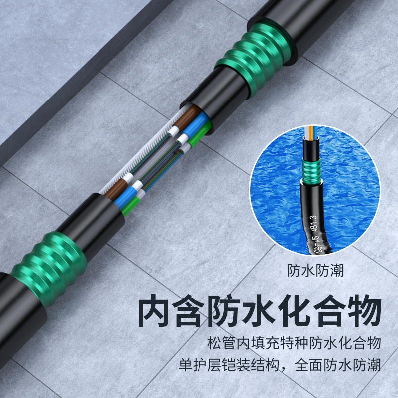 環(huán)保聚乙烯 (HDPE)黑色外被,添加UV防曬材料,耐高低溫,不易老化。高品質(zhì)線芯不易斷損耗低,采用高品質(zhì)纖芯, 損耗低穩(wěn)定抗干擾, 傳輸更快。足芯足米應(yīng)用廣泛,滿足不同環(huán)境的工作需求。強悍拉伸力和壓扁力,采用鋼塑復(fù)合帶鎧裝護套, 加粗磷化鋼絲具有良好的抗拉, 抗壓性。