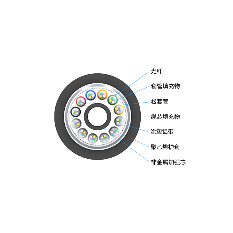 名稱(chēng):松套層絞式非金屬加強(qiáng)芯非鎧裝光纜