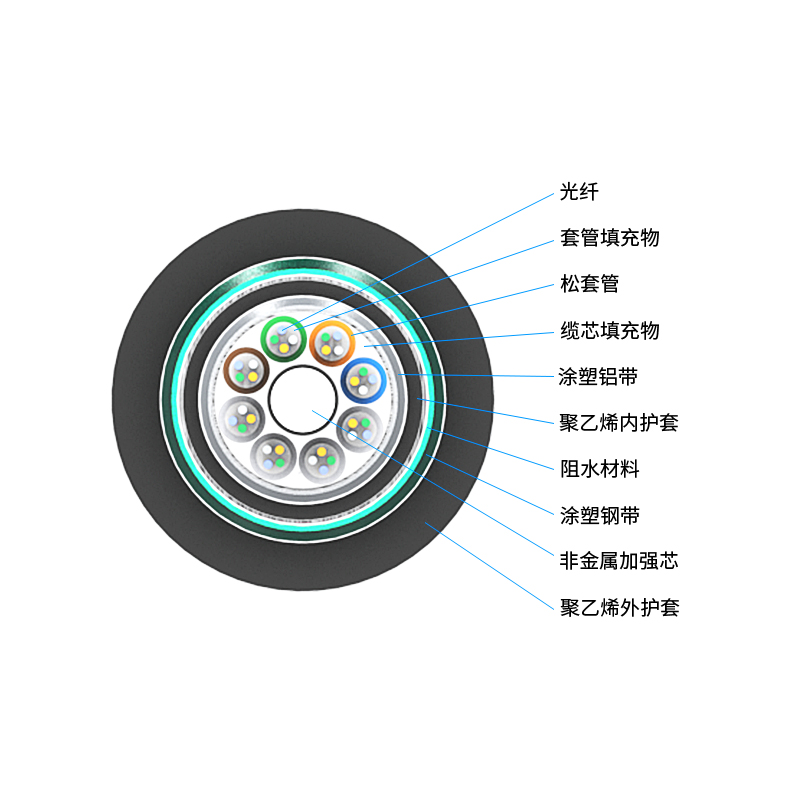 環(huán)保聚乙烯 (HDPE)黑色外被,添加UV防曬材料,耐高低溫,不易老化。高品質線芯不易斷損耗低,采用高品質纖芯, 損耗低穩(wěn)定抗干擾, 傳輸更快。足芯足米應用廣泛,滿足不同環(huán)境的工作需求。強悍拉伸力和壓扁力,采用鋼塑復合帶鎧裝護套, 加粗磷化鋼絲具有良好的抗拉, 抗壓性。