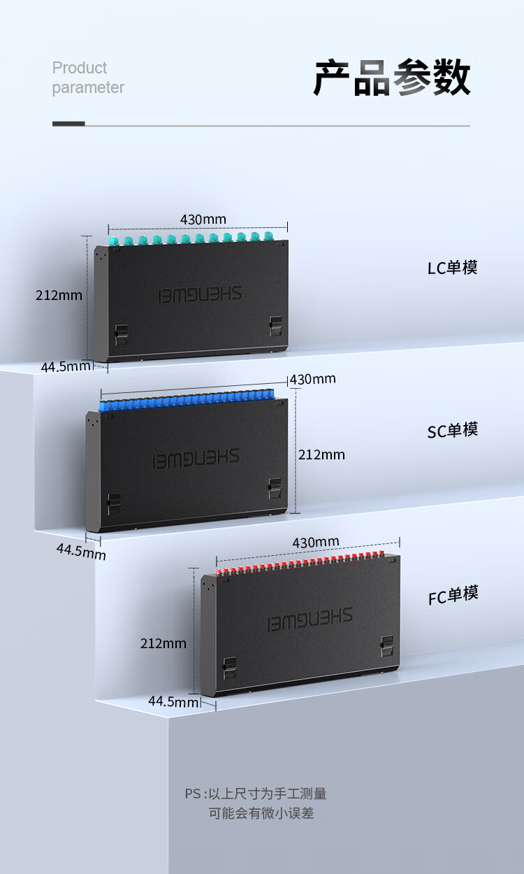 加厚加強冷軋板材質(zhì), 抗壓耐沖擊持久使用不變形, 承重力強。采用黑色環(huán)氧靜電噴塑烤漆工藝, 高度耐磨耐腐蝕不沾指紋, 質(zhì)感好。采用低損配件, 減少信號傳輸損耗;卡扣和螺絲采用內(nèi)凹設(shè)計, 堆疊平穩(wěn), 節(jié)省空間;安裝快捷,掛孔設(shè)計;熔接盤內(nèi)部結(jié)構(gòu)堅固緊密, 安裝光纜/光纖條理分配盤纖與固定, 有效保護光纖不受損傷以及控制彎曲半徑保證信號穩(wěn)定傳輸。