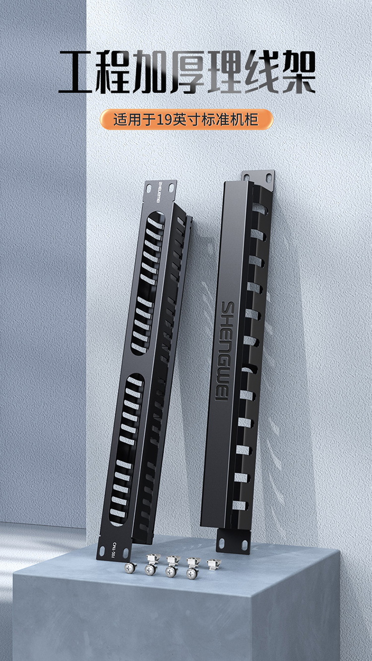 工程加厚理線架,適用于19英寸標(biāo)準(zhǔn)機(jī)柜,加厚冷軋鋼架,采用加厚冷軋板打造高強(qiáng)硬度保護(hù)線纜,理線更方便、更整潔。