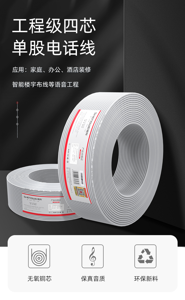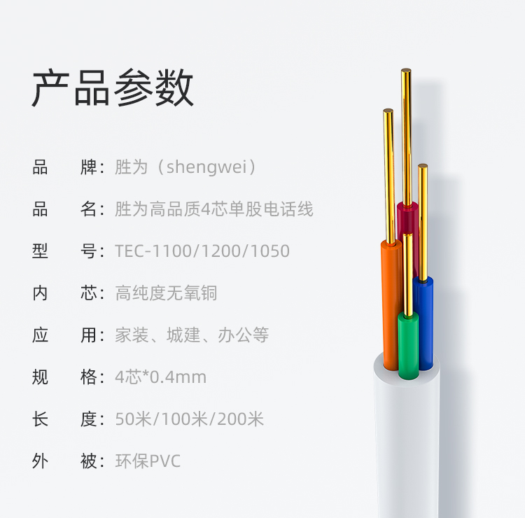 產(chǎn)品名稱:勝為高品質(zhì)4芯單股電話線