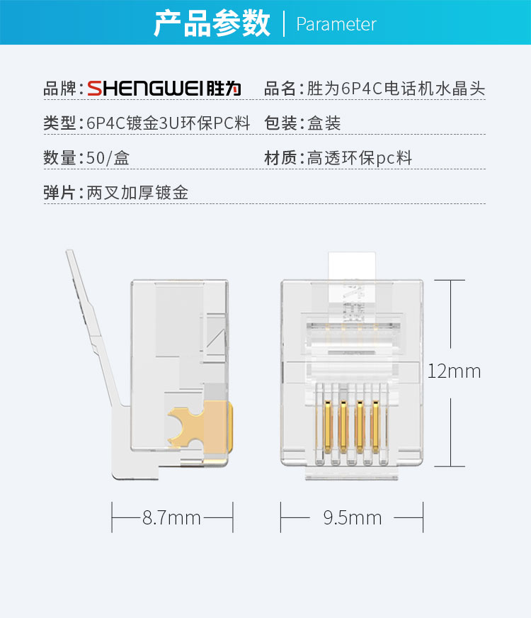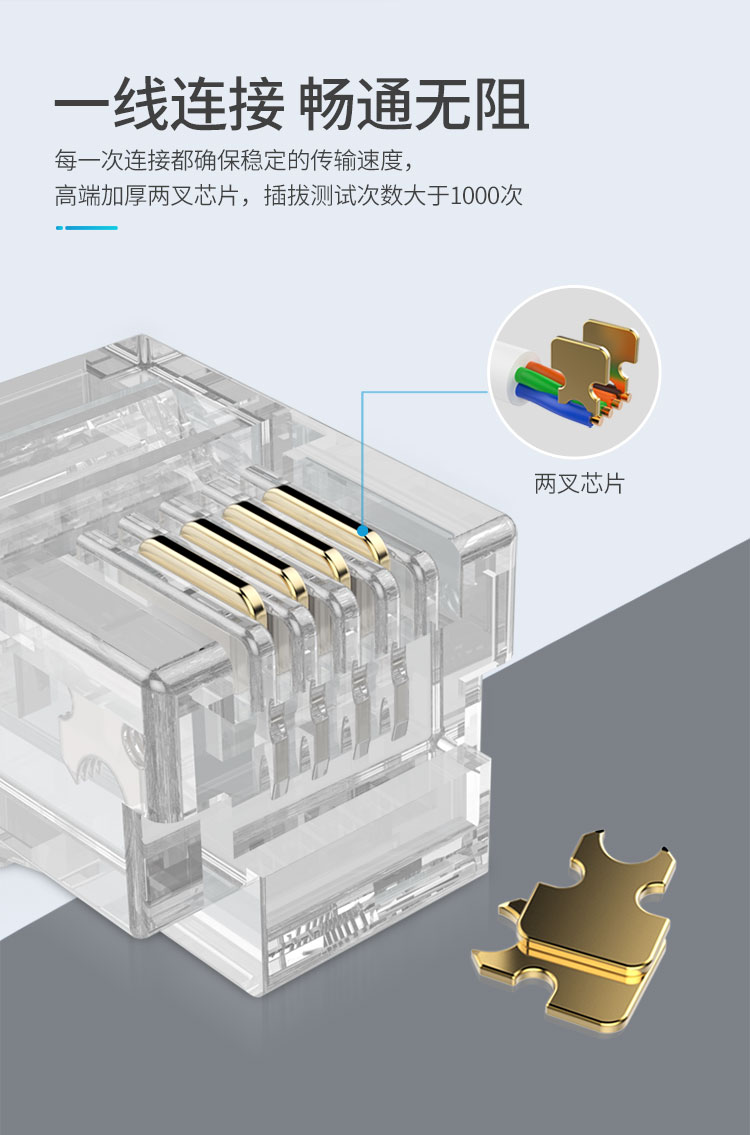 產(chǎn)品名稱:勝為6P4C電話機(jī)水晶頭