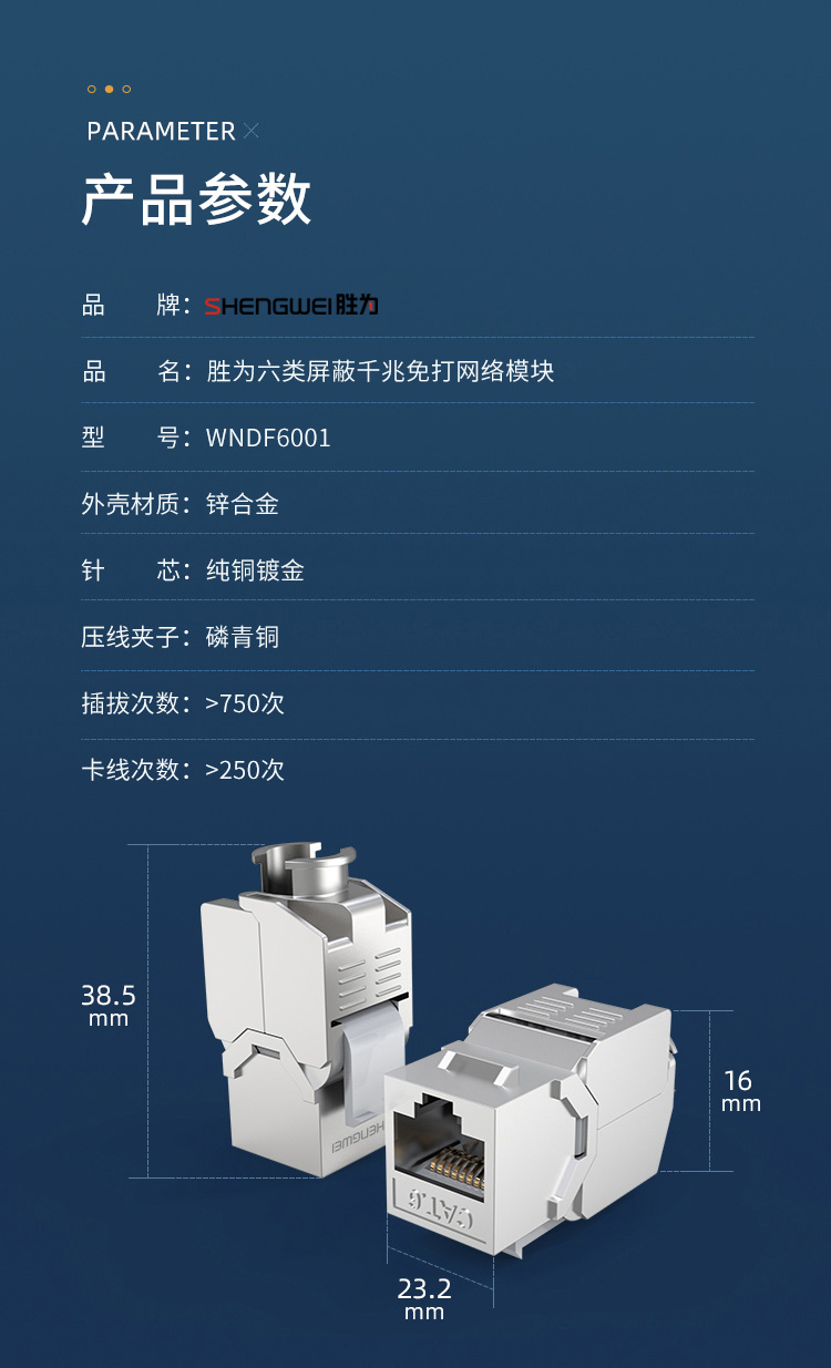 產(chǎn)品名稱:勝為六類屏蔽千兆免打網(wǎng)絡(luò)模塊