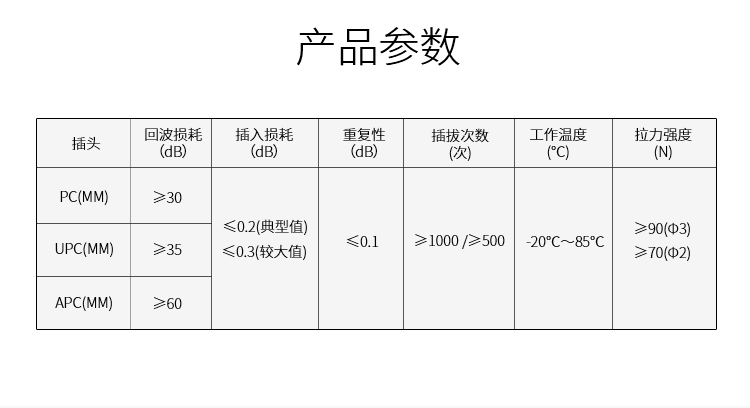 產(chǎn)品性能:插損≤0.3dB回?fù)p≥35dB