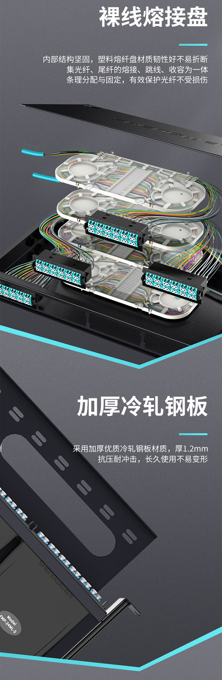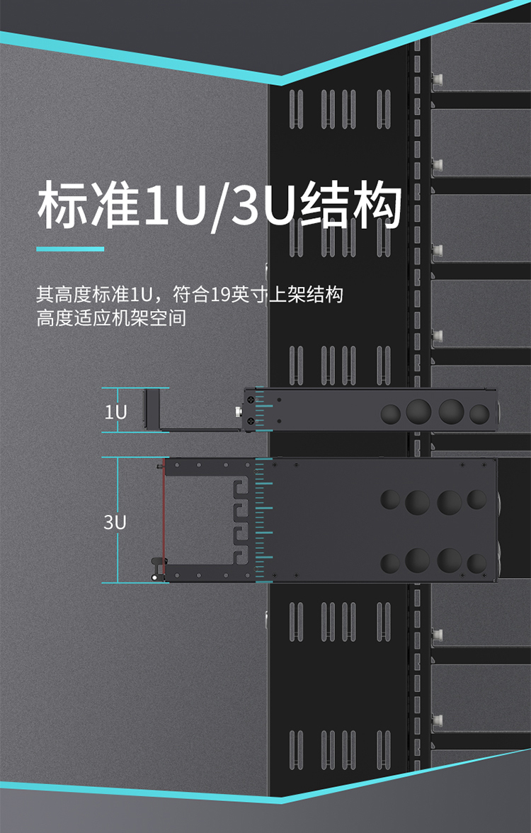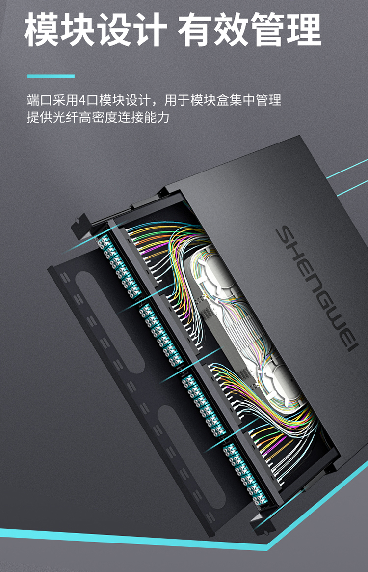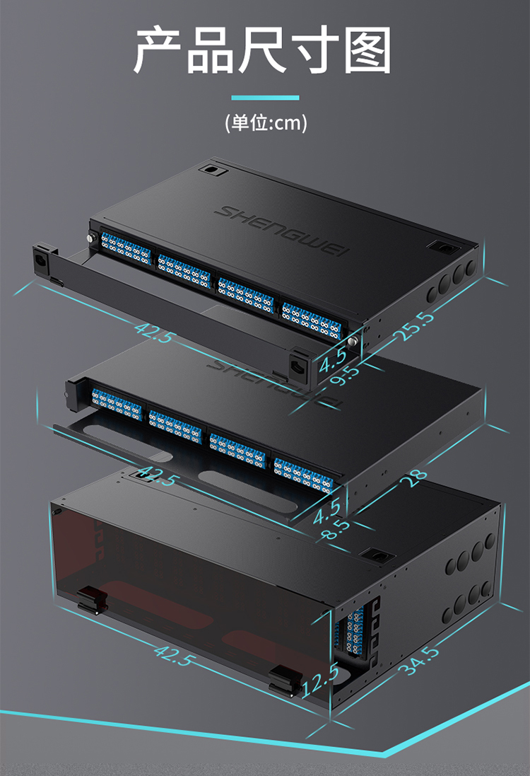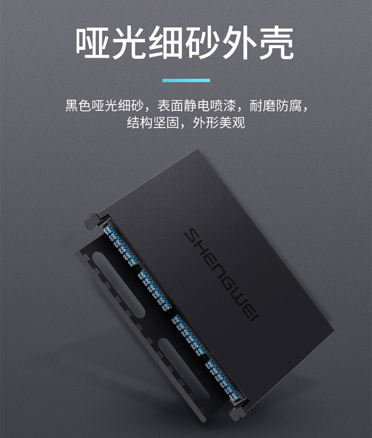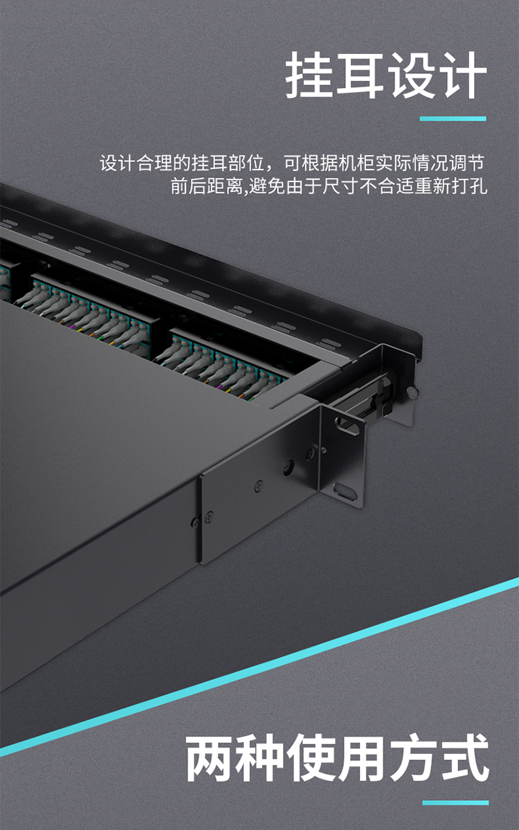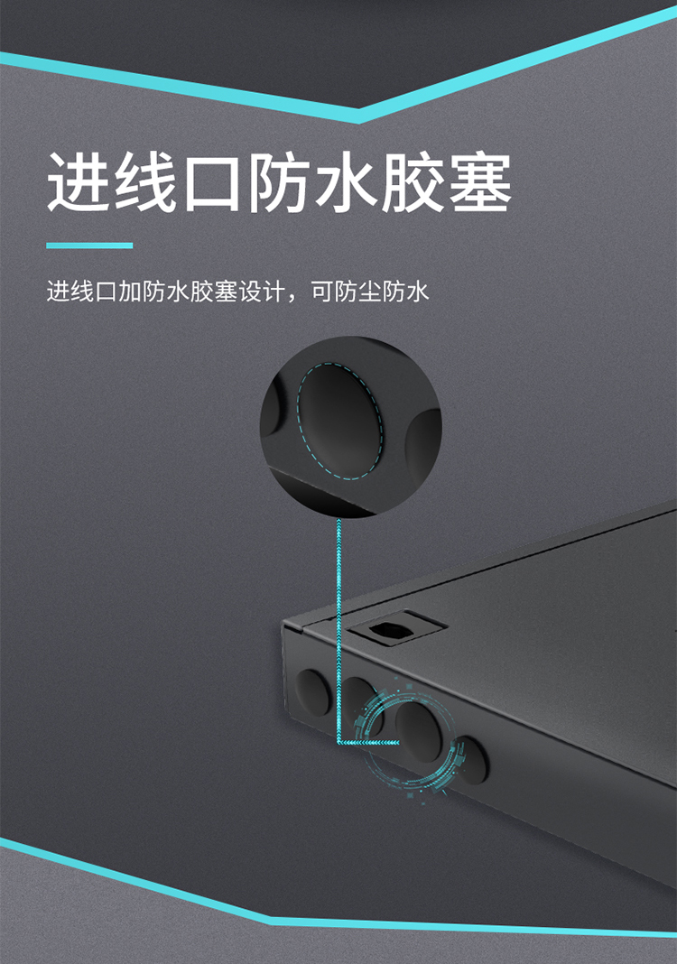 設(shè)計合理的掛耳部位,可根據(jù)機柜實際情況調(diào)節(jié),前后距離,避免由于尺寸不合適重新打孔,進線口加防水膠塞設(shè)計,可防塵防水。端口采用模塊設(shè)計,用于模塊盒集中管理,提供光纖高密度連接能力。