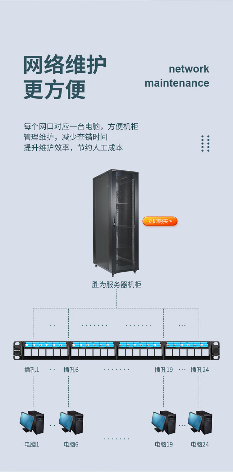 24口空口網(wǎng)絡(luò)配線架,適用于19英寸標(biāo)準(zhǔn)機(jī)柜,DIY模塊自由組裝,非屏蔽前拆式,加厚冷軋鋼板,固定裝置,通用24端口,通用標(biāo)簽,使用方便。