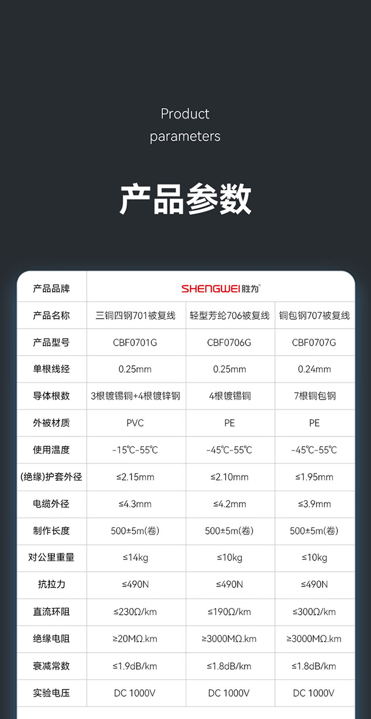銅包鋼線芯,2芯雙絞結(jié)構(gòu),抗干擾能力強(qiáng),與強(qiáng)電同走不易出現(xiàn)干擾的情況,傳輸更穩(wěn)定;環(huán)保護(hù)套防水防潮,阻燃性好、耐高低溫,可將線材直接打結(jié)系到某固定物上,柔軟易彎折。百米架空跨距無需使用鋼絲等輔助材料,直接拉拽,強(qiáng)韌不易斷。