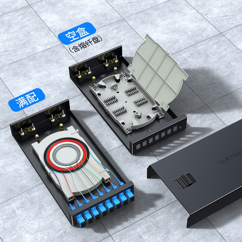 加厚加強冷軋板材質(zhì), 抗壓耐沖擊持久使用不變形, 承重力強。采用黑色環(huán)氧靜電噴塑烤漆工藝, 高度耐磨耐腐蝕不沾指紋, 質(zhì)感好。采用低損配件, 減少信號傳輸損耗;卡扣和螺絲采用內(nèi)凹設(shè)計, 堆疊平穩(wěn), 節(jié)省空間;安裝快捷,掛孔設(shè)計;熔接盤內(nèi)部結(jié)構(gòu)堅固緊密, 安裝光纜/光纖條理分配盤纖與固定, 有效保護光纖不受損傷以及控制彎曲半徑保證信號穩(wěn)定傳輸。