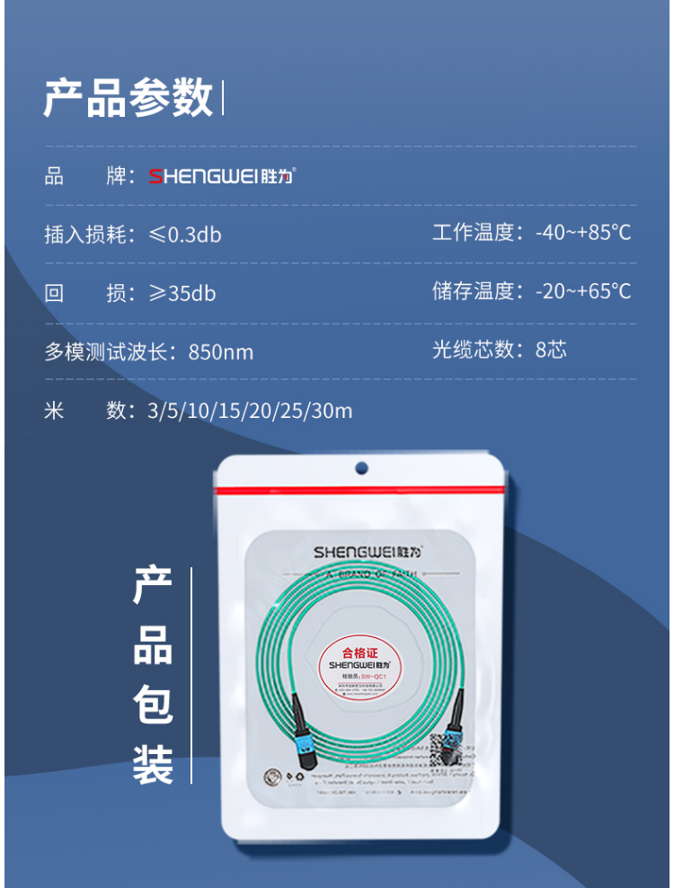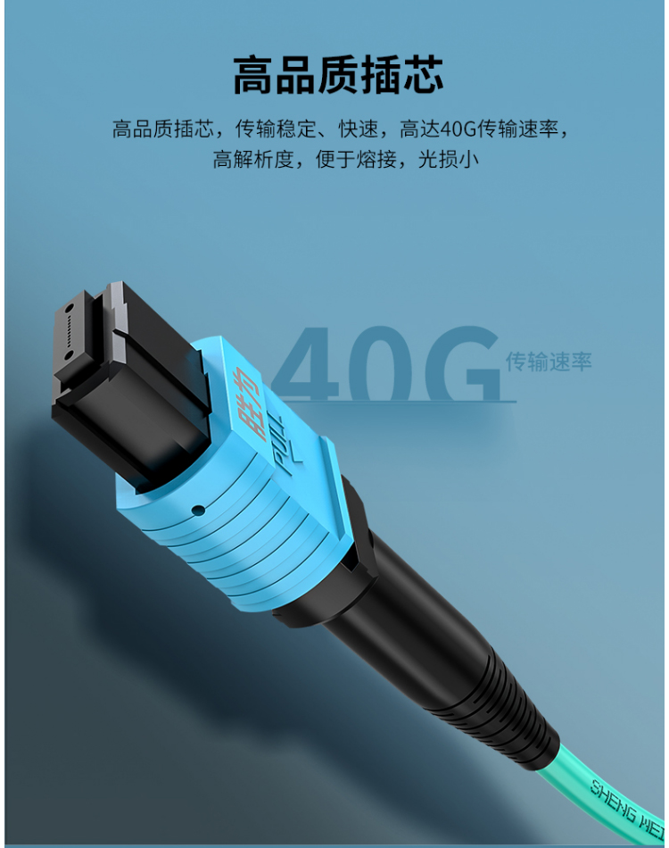 高品質(zhì)插芯,傳輸穩(wěn)定、快速,高達40G傳輸速率,高解析度,便于熔接,光損小。采用全新材質(zhì)和生產(chǎn)技術(shù),接頭可插拔次數(shù)多,插入損耗變化量≤0.3db