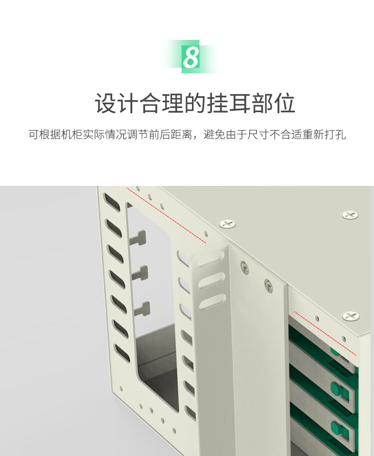 標(biāo)準(zhǔn)19英寸,螺絲安裝后表面與配線架齊平無凸起,觸感平整,避免摩擦,貼心好用;抽拉式模塊設(shè)計(jì),應(yīng)用靈活,性能穩(wěn)定,安裝更快捷;加厚冷軋板制作;采用高強(qiáng)度ABS工程塑料注塑成型,強(qiáng)度高、材質(zhì)厚實(shí),經(jīng)久耐用;標(biāo)準(zhǔn)單元結(jié)構(gòu)尺寸,適用于多種機(jī)架、機(jī)柜上的安裝。