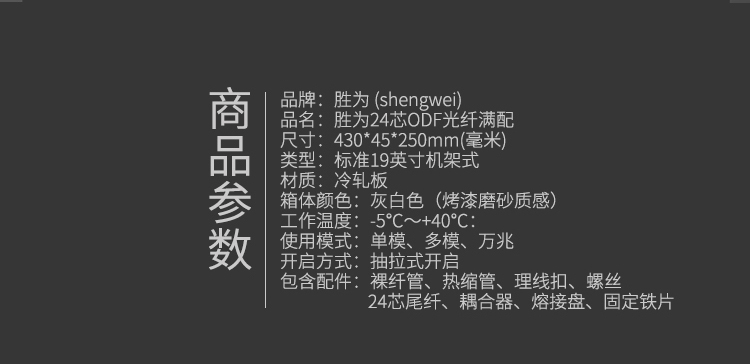 包含配件:裸纖管、熱縮管、理線扣、螺絲、12芯尾纖、耦合器、熔纖盤、固定鐵片