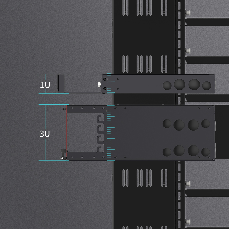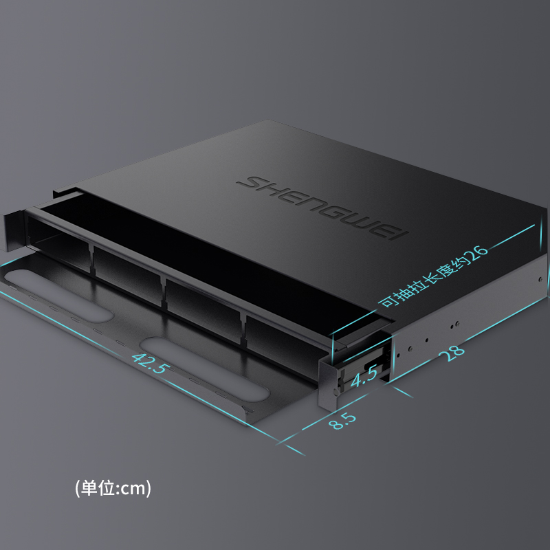 設計合理的掛耳部位,可根據(jù)機柜實際情況調節(jié),前后距離,避免由于尺寸不合適重新打孔,進線口加防水膠塞設計,可防塵防水。端口采用模塊設計,用于模塊盒集中管理,提供光纖高密度連接能力。