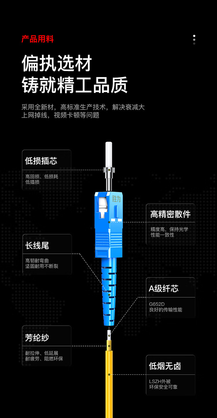 一體工藝,長線尾保護,堅固耐用不斷裂;采用全新高品質(zhì)陶瓷插芯,數(shù)據(jù)互換性穩(wěn)定