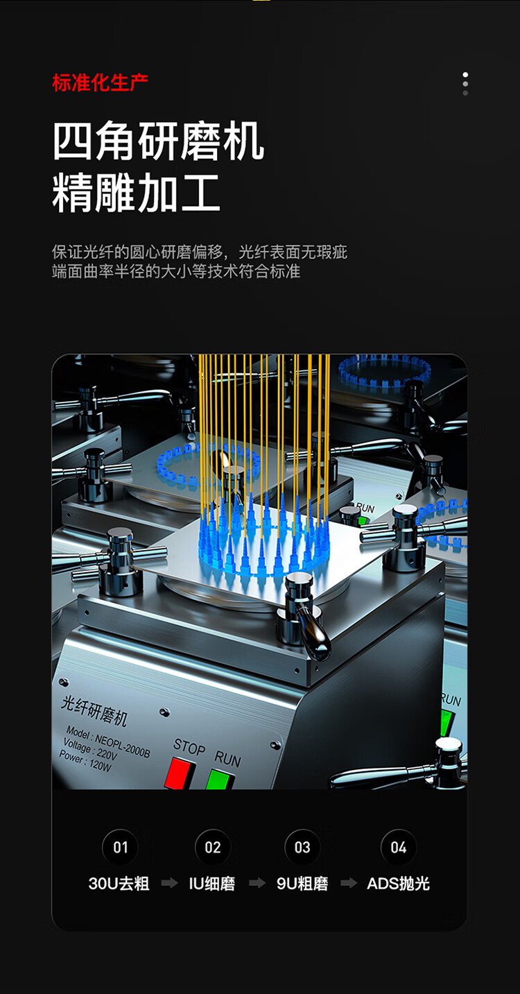 插入損耗低,產(chǎn)品經(jīng)高標準生產(chǎn)技術(shù),多重嚴格測試,確保插入損耗變化率<0.30dB,回損≥50dB