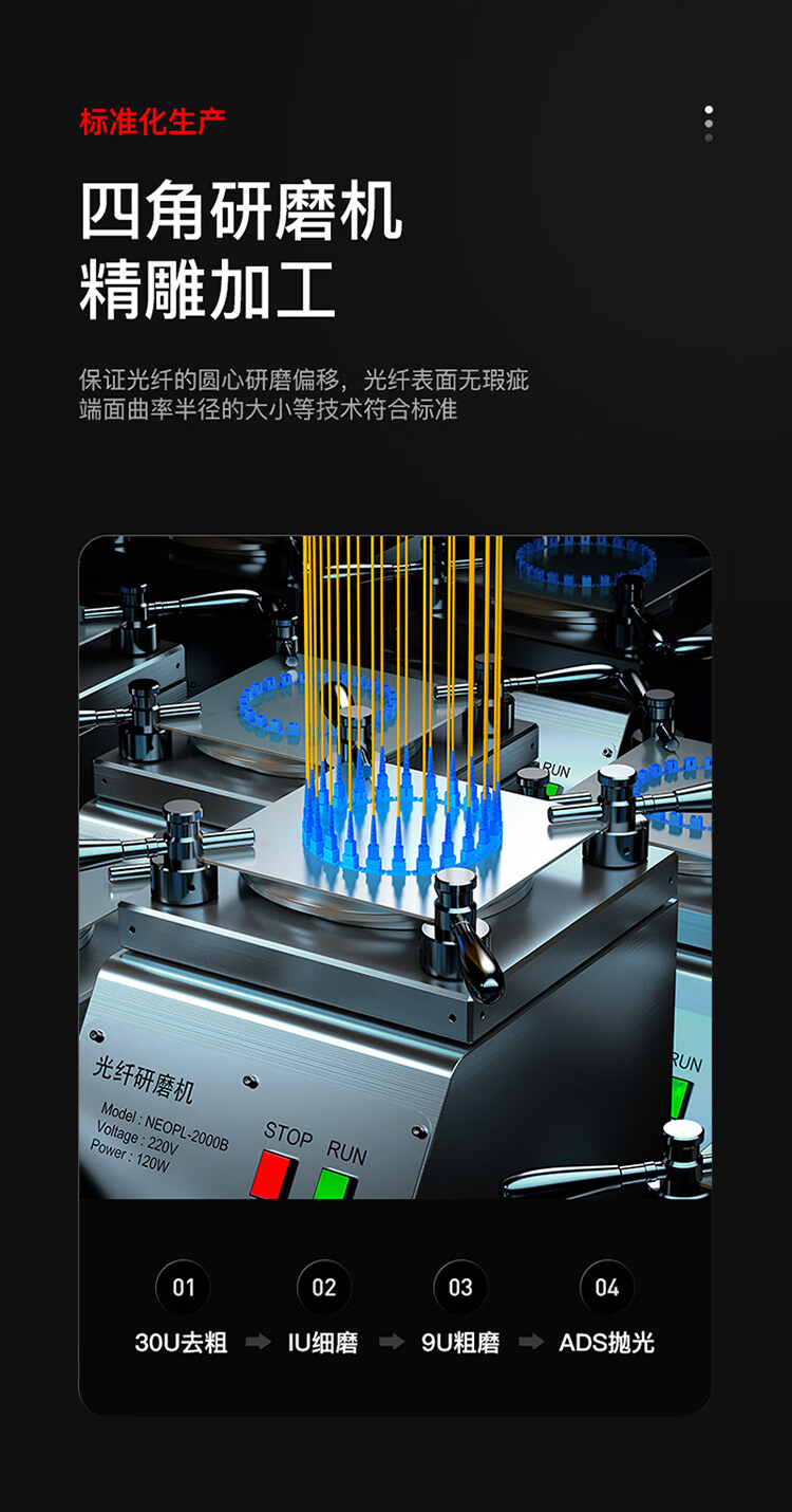 插入損耗低,產(chǎn)品經(jīng)高標(biāo)準(zhǔn)生產(chǎn)技術(shù),多重嚴(yán)格測(cè)試,確保插入損耗變化率<0.30dB,回?fù)p≥50dB